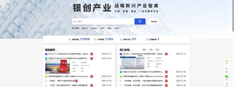 银创报告库【https://wk.chanyetong.net】是银创产业通平台中的新兴产业领域的知识共享平台。平台已上传40万+行业报告,内容涵盖行业研究报告、知名券商研报、企业分析报告、企业招股说明书、企业年报、专利文件、行业标准文件、行业专家报告等。为投资、创业、咨询、产品运营、管理人员提供一个学习、交流、提升的知识共享服务平台。